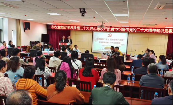 4月23日下午,為不斷深化拓展“學習宣傳貫徹黨的二十大精神”的有效載體,努力增強學習宣傳貫徹黨的二十大精神的吸引力、感染力和針對性、實效性。市農(nóng)發(fā)集團開展了以“學思踐悟二十大,匠心惠農(nóng)開新篇”為主題的黨的二十大精神知識競賽活動。集團領(lǐng)導班子全體成員和干職工參加,市國資委黨委委員、副主任馮斂峰和黨群工作科科長鄭靈麗出到場指導。