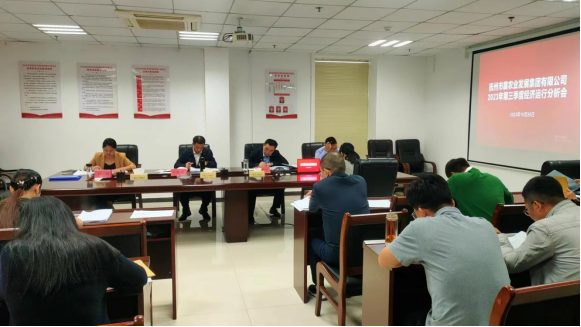 10月26日上午,市農(nóng)發(fā)集團(tuán)召開2023年第三季度經(jīng)濟(jì)運(yùn)行分析會,會議由黨委書記、董事長王柏榮主持并講話,集團(tuán)黨委副書記、總經(jīng)理胡建軍,黨委委員、副總經(jīng)理吳娓及各子公司、各部門主要負(fù)責(zé)人出席會議。