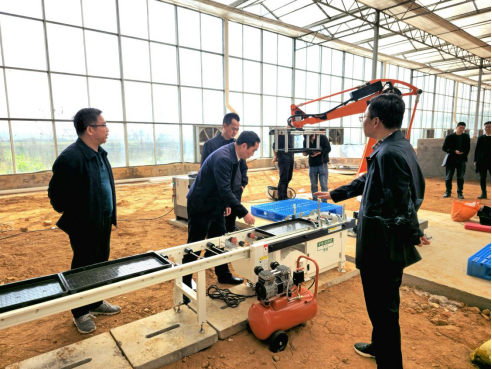 隨后,胡建軍和袁曉泉分別代表市農(nóng)發(fā)集團(tuán)和市農(nóng)科所共同簽署了科企合作協(xié)議,并前往工廠化育秧基地實(shí)地考察了項(xiàng)目進(jìn)展情況。該育秧生產(chǎn)線設(shè)備先進(jìn)、性能優(yōu)良、工藝領(lǐng)先,核心裝備性能全市一流,正在緊張調(diào)試之中,將于4月份建成并投入使用,屆時將為我市提供1.5萬畝以上水稻秧苗服務(wù)產(chǎn)能。與傳統(tǒng)育秧模式相比,工廠化育秧實(shí)行機(jī)械化操作、自動化管理,濕度、溫度可精準(zhǔn)把控,這不僅可以縮短育秧周期,有效減輕“倒春寒”及爛秧的不利影響,還能降低病蟲害,提高秧苗存活率,為實(shí)現(xiàn)水稻高產(chǎn)提供有力保障。