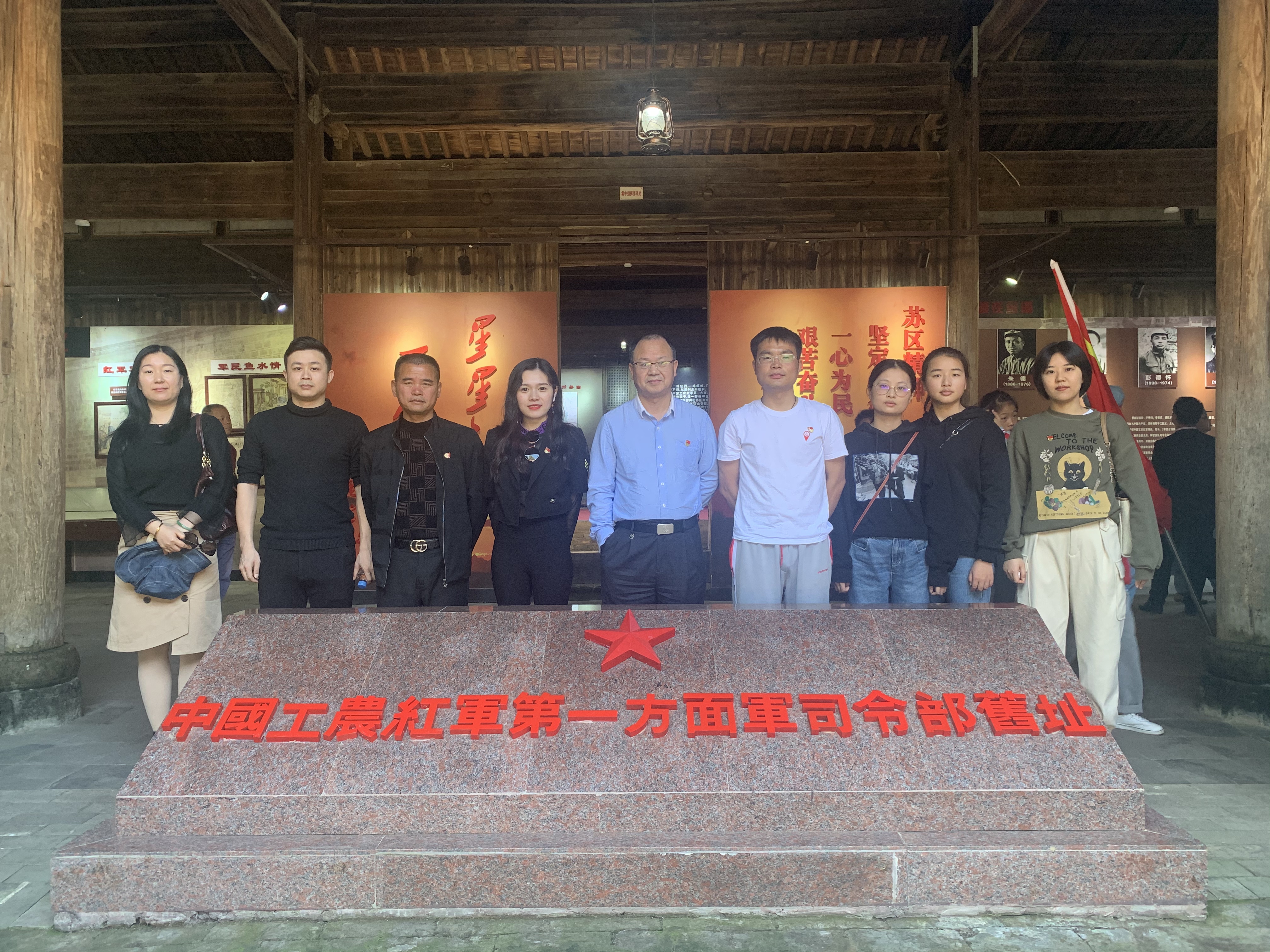 抵達(dá)紅色后龔革命傳統(tǒng)教育基地后,大家肅然站立,瞻仰周恩來(lái)、朱德、王稼祥三位革命先輩雕像。隨后,全體人員在講解員的帶領(lǐng)下,沿著當(dāng)年紅軍走過(guò)的小道,追尋烈士足跡,實(shí)地參觀中央紅軍總司令部舊址、中央紅軍總政治部舊址、中央紅軍總衛(wèi)生部舊址及周恩來(lái)舊居、王稼祥舊居等革命遺址,并在宣誓墻面前進(jìn)行莊嚴(yán)宣誓,重溫入黨誓詞。