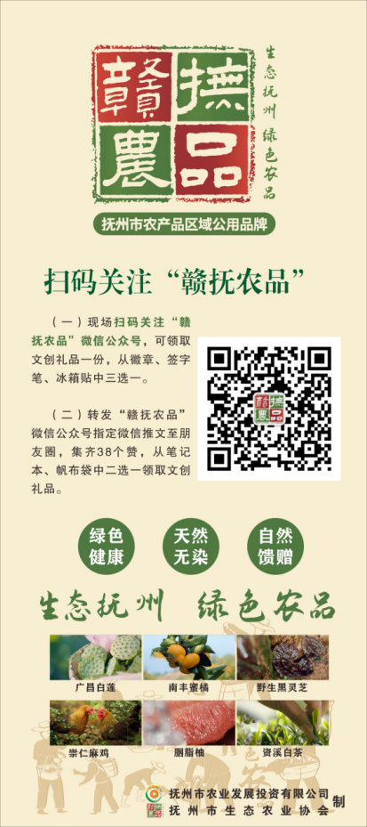 在活動現(xiàn)場掃碼關(guān)注“贛撫農(nóng)品”微信公眾號和轉(zhuǎn)發(fā)“贛撫農(nóng)品”微信公眾號指定推文至朋友圈集齊38個贊,還可獲得徽章、簽字筆、冰箱貼、筆記本、帆布袋等精美的文創(chuàng)禮品。