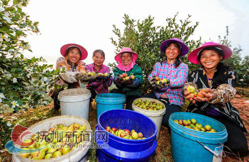 日前,生態(tài)農(nóng)業(yè)協(xié)會首批“贛撫農(nóng)品”品牌授權(quán)會員企業(yè)江西健達(dá)食品有限公司有機(jī)山茶籽基地--位于廣昌縣甘竹鎮(zhèn)朝花村的茶農(nóng)正在采摘有機(jī)油茶果。近年來,該公司流轉(zhuǎn)荒山1020畝種植高產(chǎn)油茶,自2018年開始掛果,預(yù)計(jì)今年能收獲有機(jī)油茶籽近5萬公斤,產(chǎn)出有機(jī)茶油約3000公斤,年產(chǎn)值可達(dá)80多萬元,并吸納周邊10多名村民到基地務(wù)工。(黃艷靜)