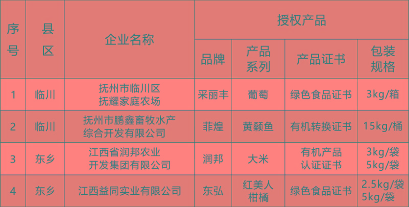 根據(jù)《撫州市生態(tài)產(chǎn)品質(zhì)量認證結(jié)果采信試點實施方案》(撫府辦字【2023】30號)文件精神,按照《撫州市生態(tài)農(nóng)業(yè)協(xié)會章程》、《“贛撫農(nóng)品”區(qū)域公用品牌使用管理辦法》、《“贛撫農(nóng)品”集體商標管理實施細則》相關(guān)規(guī)定,經(jīng)撫州市生態(tài)農(nóng)業(yè)協(xié)會組織初審、復審,最終評定2023年共33家會員主體的57個產(chǎn)品符合品牌授權(quán)標準。現(xiàn)將2023年度授權(quán)使用“贛撫農(nóng)品”區(qū)域公用品牌的產(chǎn)品名錄予以發(fā)布。