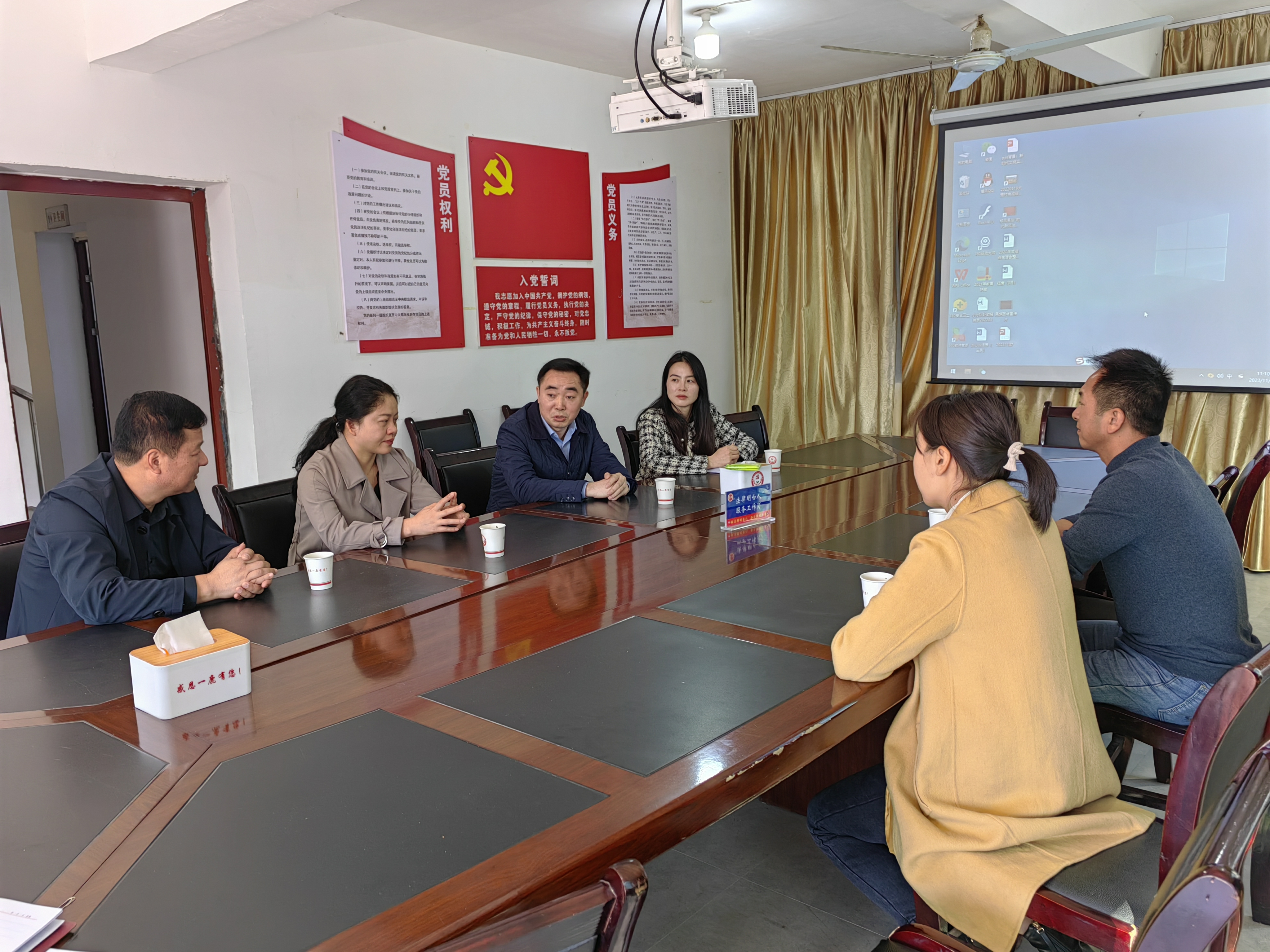 交接會上梅淑芳簡要匯報了近期駐村隊的工作情況,對原駐村隊員兩年的工作表示肯定。大鹿村黨支部也對市農發(fā)集團始終高度重視駐村幫扶工作表示感謝。